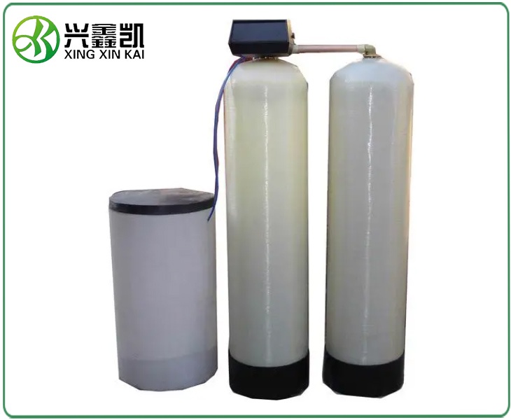 再生時要求先對樹脂層進行反洗,以去除上層樹脂可能截流的懸浮物等雜質(zhì),同時起到松動樹脂層的作用。然后從樹脂罐上部進鹽,再生廢液通過下排排出。進鹽過程中,鹽水中高濃度的Na+把失效樹脂吸附的Ca2+ Mg2+離子置換下來,與再生廢液一同排出,達到活化樹脂的目的。吸鹽結束后,再以約一到兩倍樹脂體積的清水把樹脂層中的濃鹽水置換出來。最后進行正洗工藝,徹底清除樹脂層中殘留的鹽液。再生過程中濃鹽液通過噴射器自動吸入,并自動混合到預定濃度后送入交換器,再生劑濃度可通過閥門自由調(diào)節(jié)。