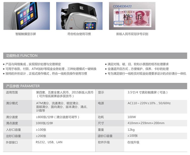 高速全功能清分能力,精準的冠字號碼識別技術與網絡信息管理,全方位檢測紙幣真偽